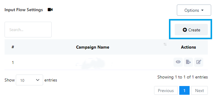 - Click the `Create` button to initiate the creation of a new User Input Flow.